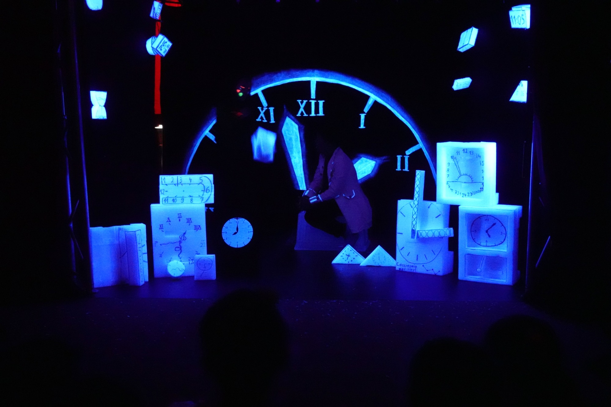 Die dritten Klassen erarbeiteten an jeweils zwei Schultagen ein Schwarzlicht-Theaterstück zu „MOMO“, basierend auf dem gleichnamigen Roman von Michael Ende.